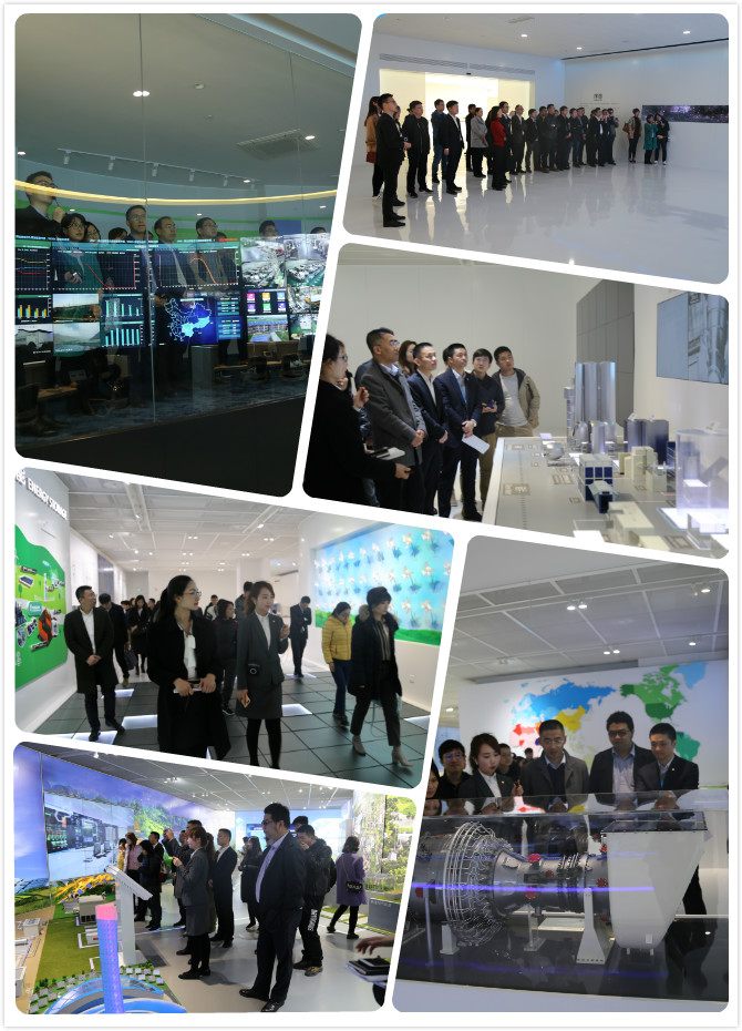 来访嘉宾在讲解员引领下,先后参观未来能源馆的数据集控中心、能源革命发展历程、太阳能、风能等新能源技术发展、储能技术发展、能源互联网等,不仅见到了协鑫集团的整体业务及信息化发展程度,而且感受了世界能源发展的未来方向,更是切身领略了“绿色、新能源、可持续”的能源发展理念。