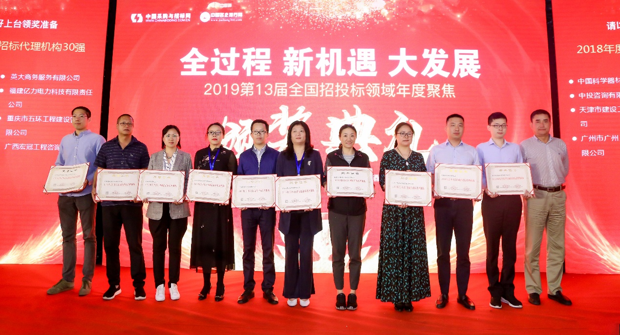 2019年5月20日,“2019年第13届全国招投标领域年度聚焦”活动在北京隆重举行。本次活动由中国采购与招标网、中国名企排行网主办,国信招标、中招国际等多家业内企业协办。活动主要包括两大议程,分别是“全过程、新机遇、大发展”高峰论坛与年度聚焦颁奖典礼。